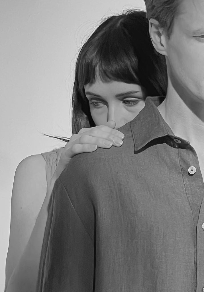 Ancora is dressed in that feeling. In the closeness of two people standing in the same light. In the scent of citrus and salt carried on the air. In the linen that softens against the skin until it becomes part of the memory itself.