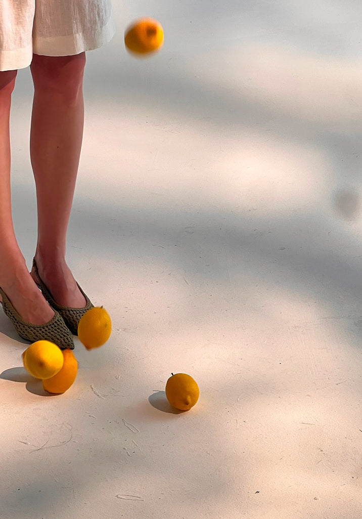 The palette is drawn from memory and place. Blush from the faded walls of a villa at sunrise. Deep olive from a grove in the afternoon heat. Washed blue from shutters left open to the sea breeze. Cacao from warm earth, from coffee taken without rush.