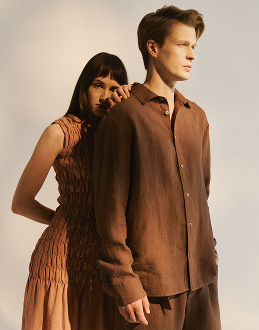 This collection begins somewhere warm. In Italian light, unhurried days, and the small details that make a place feel like home. Certified Lithuanian linen, made to be worn slowly and kept for a long time.