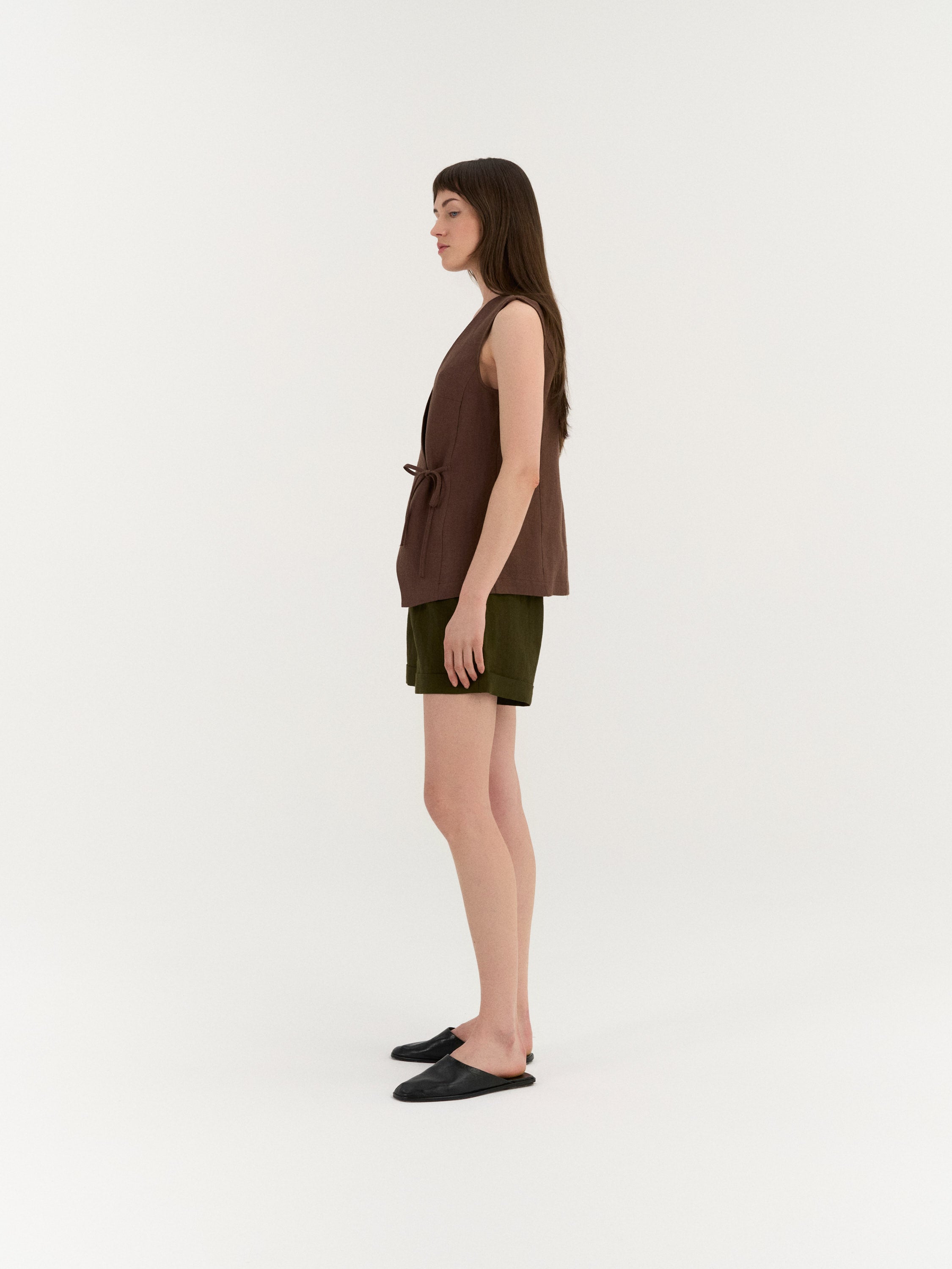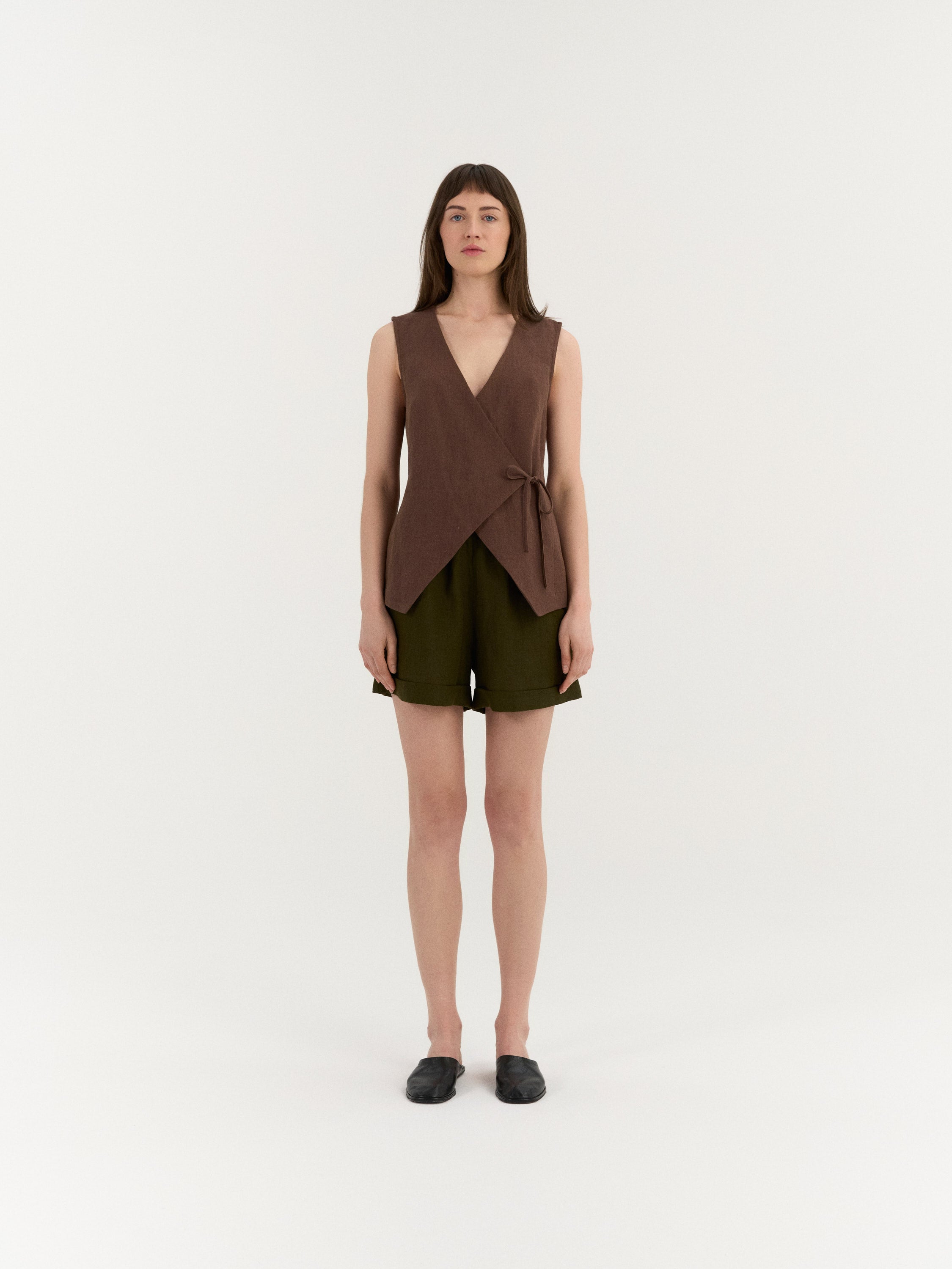 A sleeveless linen top with a clean, minimal silhouette. Designed with a simple round neckline and an easy, comfortable fit. Lightweight and versatile, this top pairs effortlessly with skirts, trousers, or shorts for everyday styling.